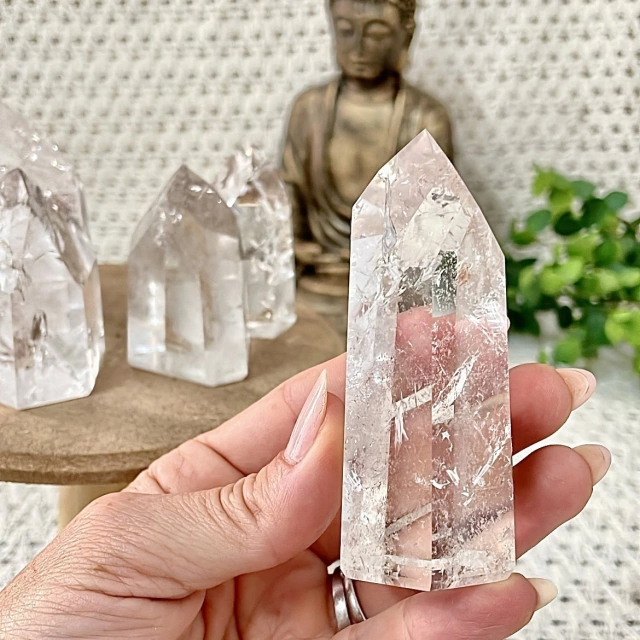 Imagine uma uma ponta de quartzo transparente que captura a essência da pura beleza e da energia cósmica. À primeira vista, é apenas uma pedra translúcida, mas ao olhar mais de perto, você descobre um universo inteiro contido em seu interior.